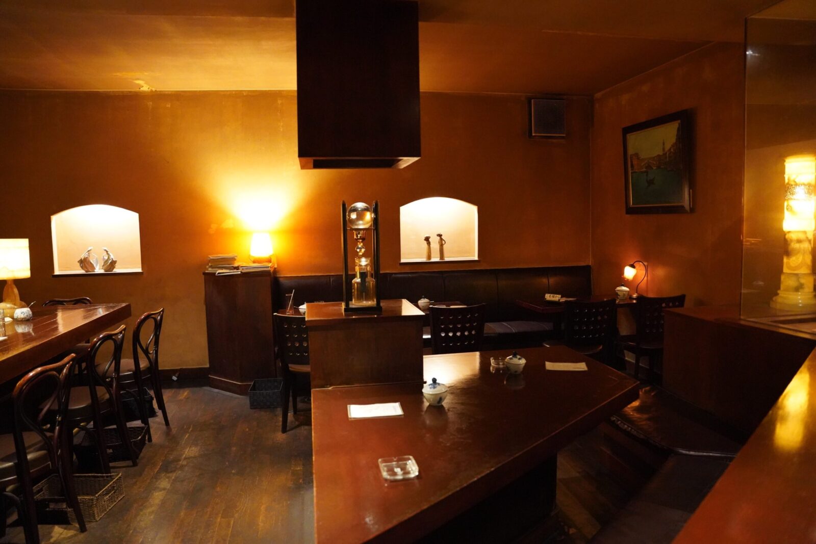 店内に入ると、コーヒーのいい薫りがふわりと漂い、暗めの店内。